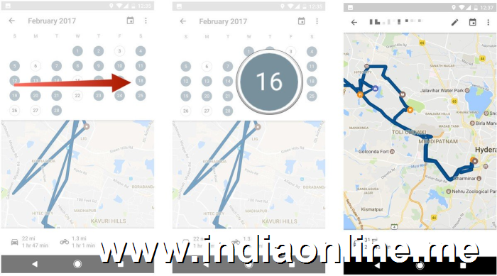 2. Tap a date to view your location history. You'll see the route traveled, along with the duration and length of the overall journey.